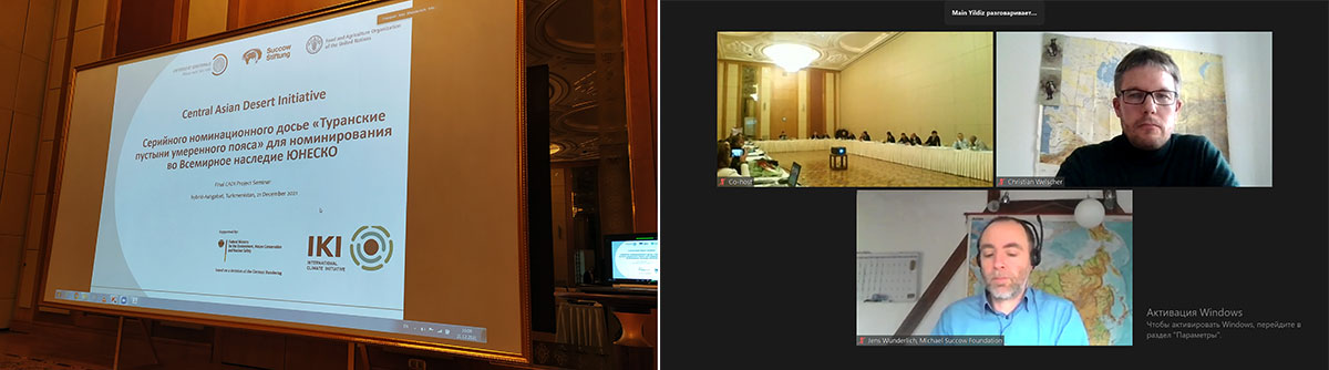 On December 21, 2021, videoconferences were held in the conference Hall of the Yildiz hotel with the participation of international experts in the framework of the joint project of the Ministry of Agriculture and Environmental Protection of Turkmenistan (MAHiOOST) and the Michael Zukkov Foundation for Nature Conservation (MSF, Germany) “Central Asian Initiative on deserts "-" Conservation and sustainable use of the deserts of Turkmenistan "(CADI / CADI).