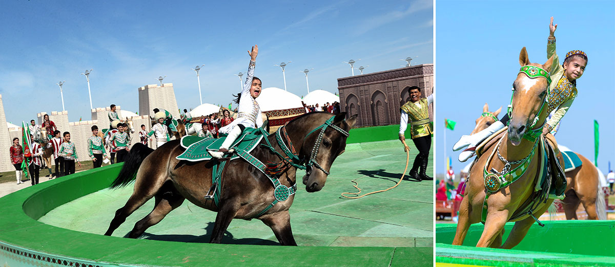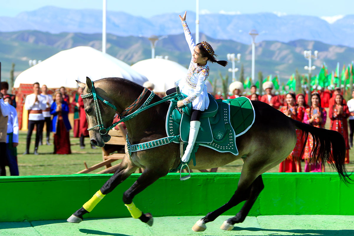 In a shiny Amazon costume with outstretched arms, Medina Bayramdurdyyeva dashingly rides a beautiful Akhal-Teke horse. With the speed of the wind, she rushes forward to new successes, victories and achievements. And we wish her happiness in her not childishly difficult, but such an exciting fate.