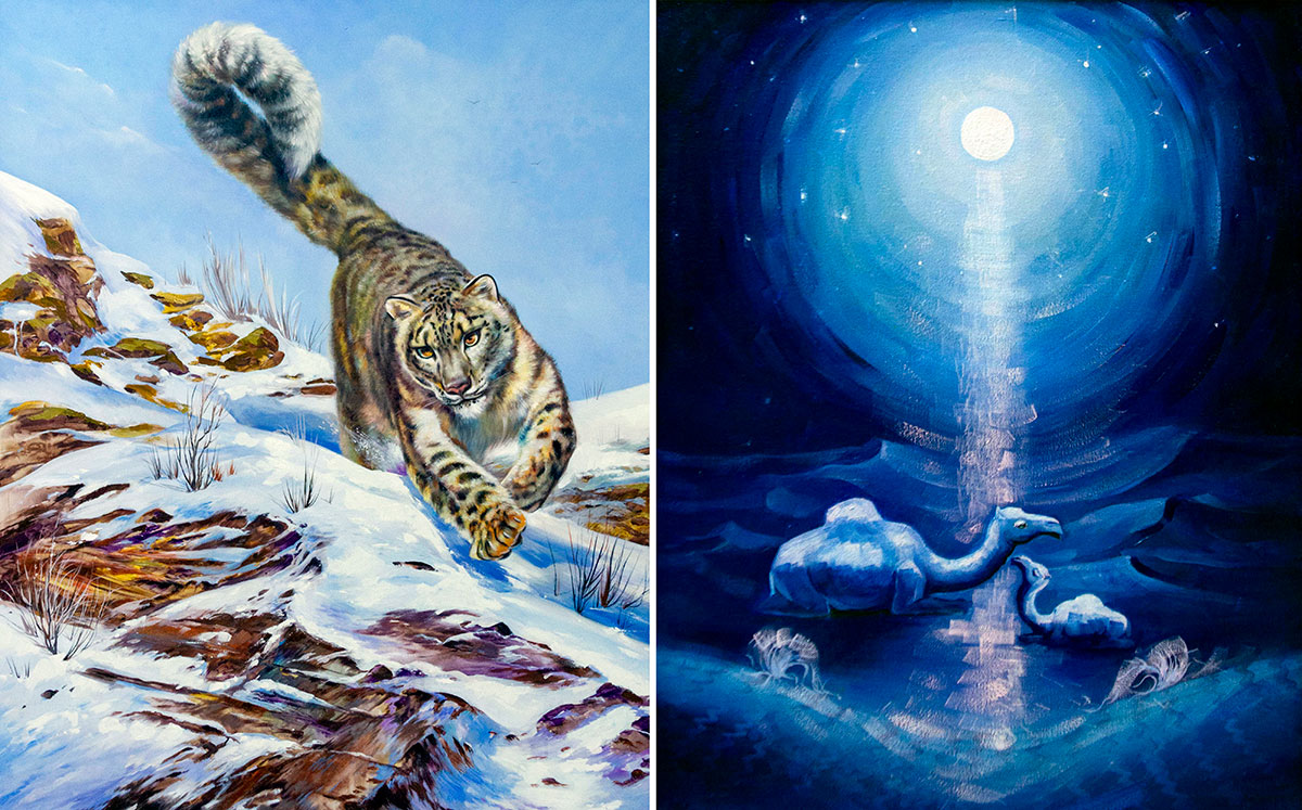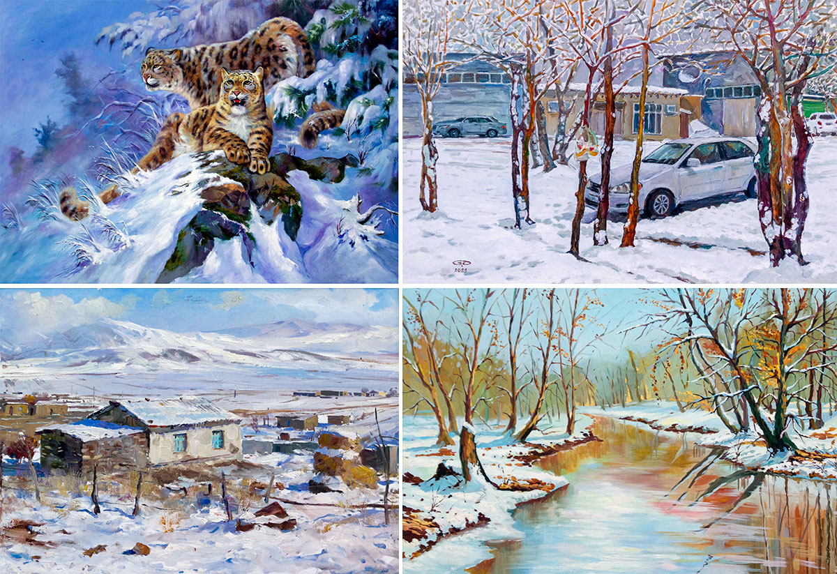 In total, the exposition presents about 100 creative works - snow-covered landscapes of mountainous regions, snow leopards and winter sketches from famous artists of the country, including Ovezmukhammet Mammetnurov, Shamukhammed Akmukhammedov, Rustam Abdullaev and many others.