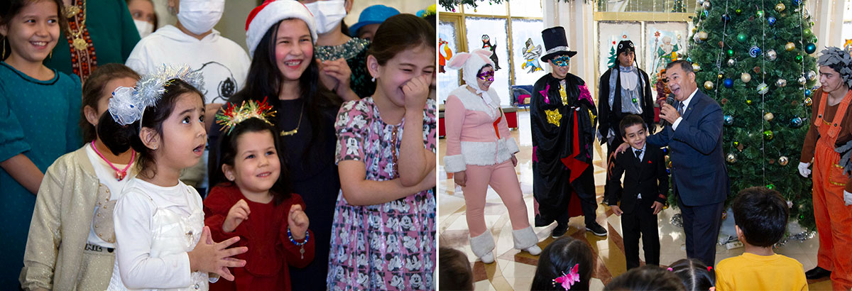 The Ashgabat’s boys and girls like most of all the New Year's performances at the Turkmen State Puppet Theatre. This time, near the decorated New Year tree, a magician and sorcerer in a black overcoat with stars appeared first before the children, who eagerly awaited Ayaz Baba and Garpamyk. To confirm his involvement in miracles, he immediately showed several tricks, and imperceptibly involved boys and girls in the games, as well as fairy-tale characters - the Crow, Rooster, Hedgehog, Hare and even Baba Yaga with a broom.