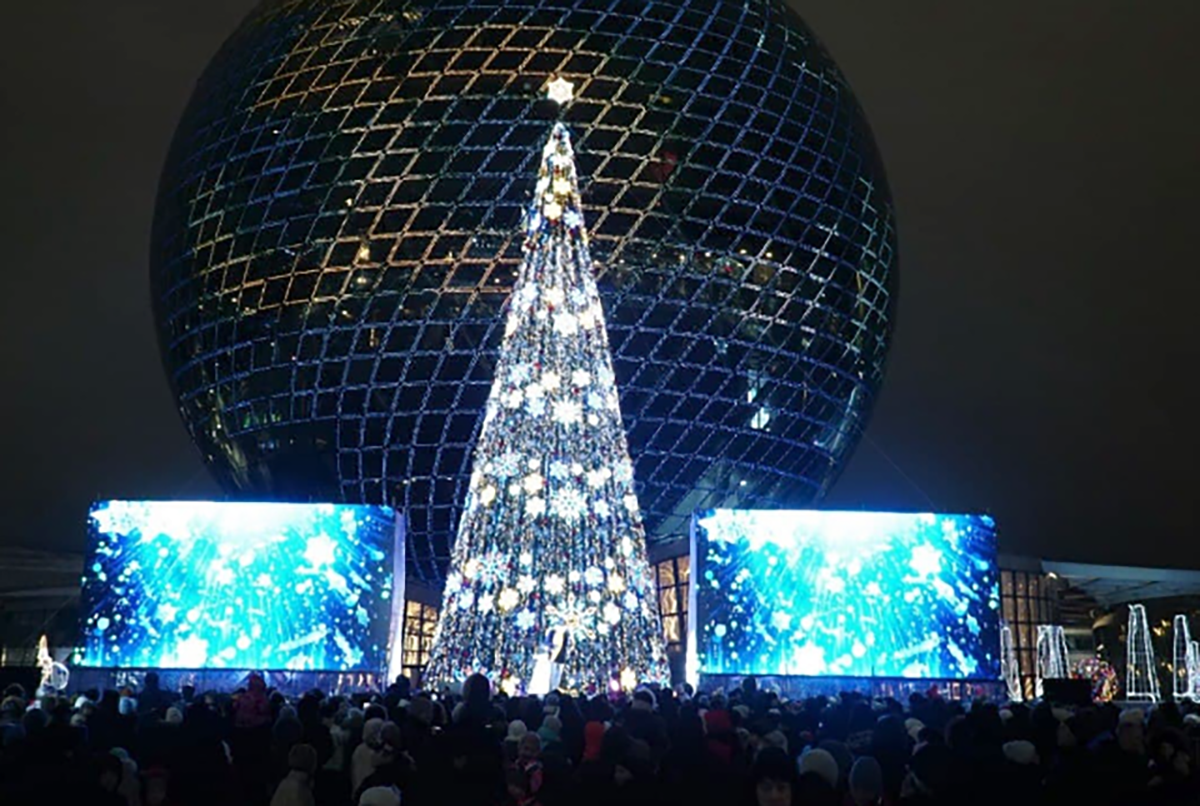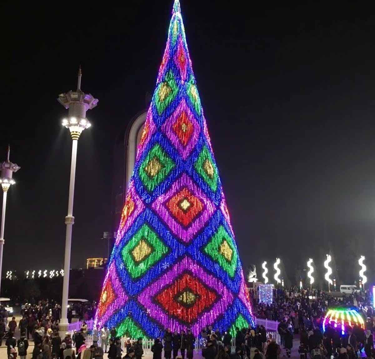 For the second year in a row among the highest New Year trees of CIS countries leads the Main New Year tree of Turkmenistan, installed in the square in front of the Alem cultural and entertainment center in Ashgabat.