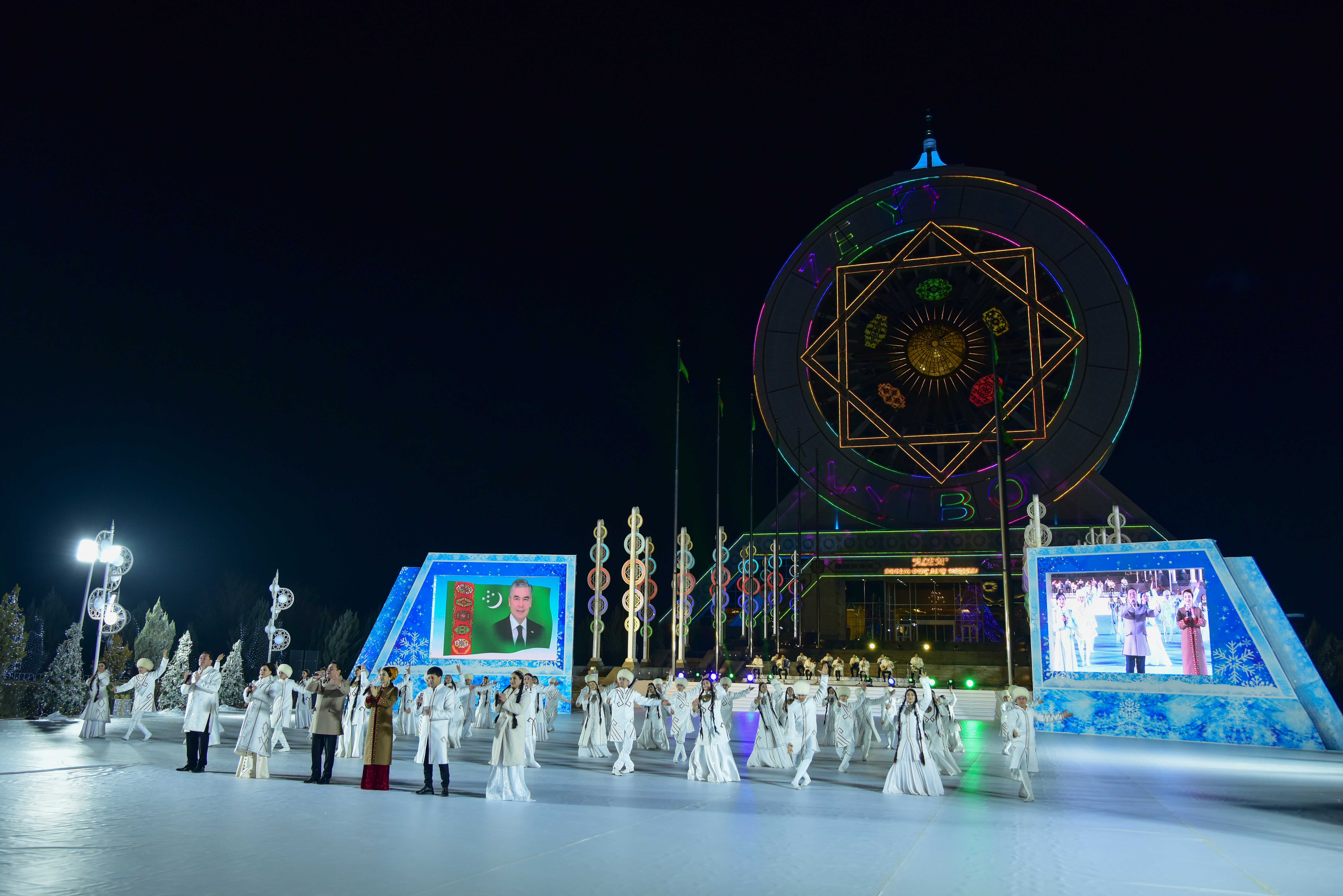 Thanks to digital means of communication, the administrative centers of the country's regions joined the celebration in the capital, where the New Year is celebrated at the magnificent buildings of “Türkmeniň ak öýi”, which have become true centers of spirituality and high culture. It also hosted colorful performances with the participation of popular creative teams.