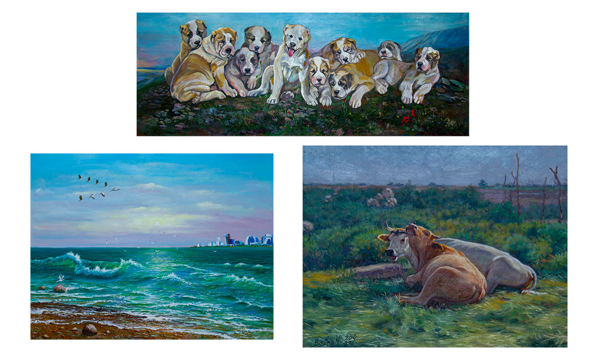 The artist Keramaz Amataev presented the painting "Ten Alabaуs" for the exhibition. Adorable puppies on the hill "huddle" under the azure cloudless sky. This breed of dog, which has established itself as the best friend and assistant to the shepherd, has become a symbol of faith and reliability for humans. And the citizens of our country are proud of the Turkmen alabai, its strength and kindness, intelligence and charm.