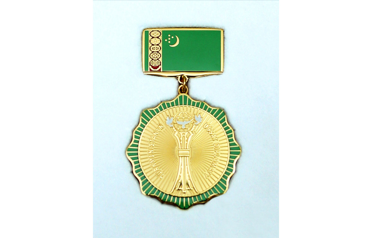 In a solemn atmosphere, to the applause of those present, the head of state was awarded the distinctive title “Türkmenistanyň ussat diplomacy”.