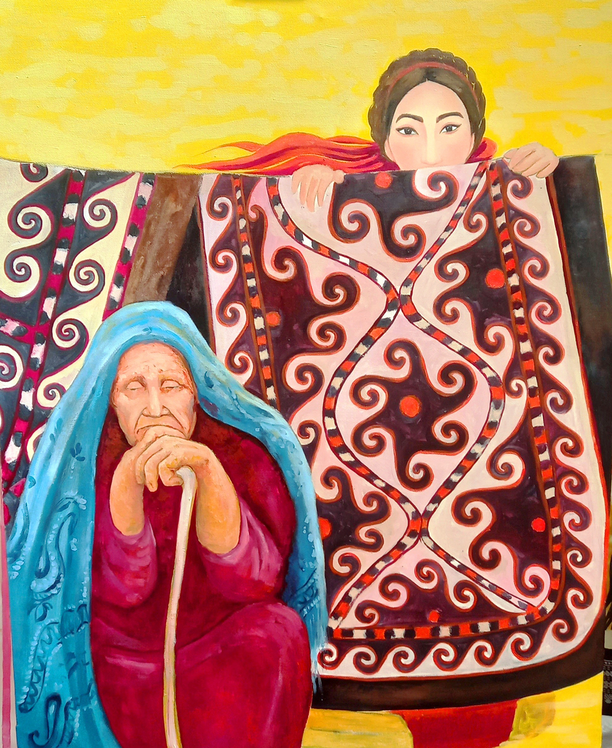 Aybibi finds inspiration for creating his paintings in the rich historical and cultural heritage of the people. She sings of the life of Turkmen women and mothers on her canvases. Filling each image with its vision and meaning.