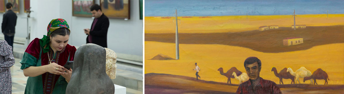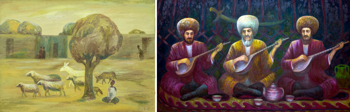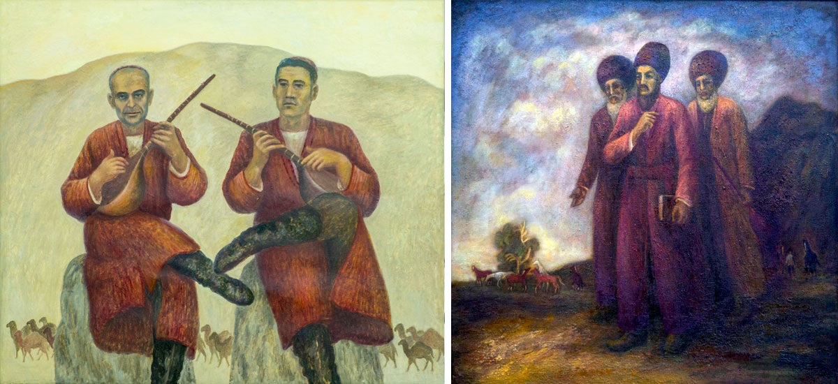 One of his famous paintings is «Bagshy», in which he depicted three brilliant musicians - Garadyali Göklen (in the middle), Shukurbagshy (on the left) and Amangeldi Gonibek (on the right). It always attracts special attention of visitors.