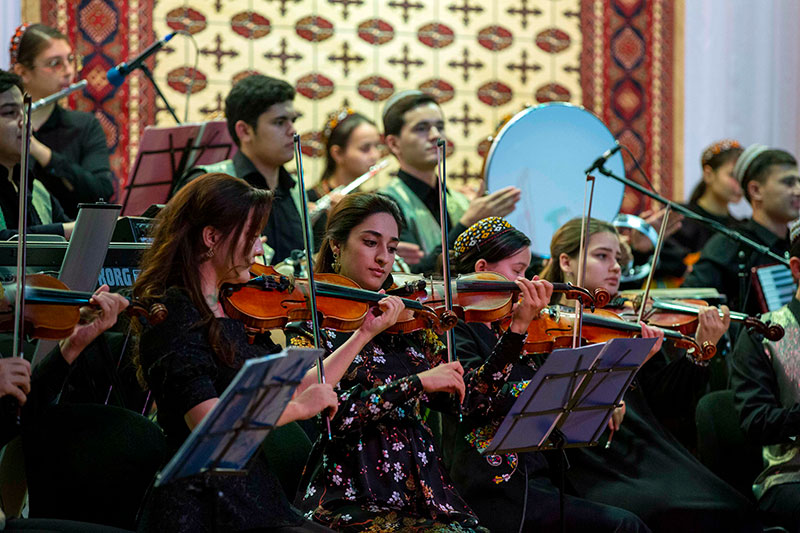 The concert ended, and all the participants of the concert program took the stage along with Mansur Sharipov. The public gave special applause to the artistic director and conductor of the orchestra, twice winner of the “Türkmenistanyň Altyn asyry” award of the President of Turkmenistan Maysa Mammetjumayeva, who is the initiator of this fun and original concert.