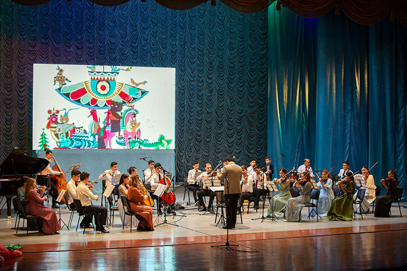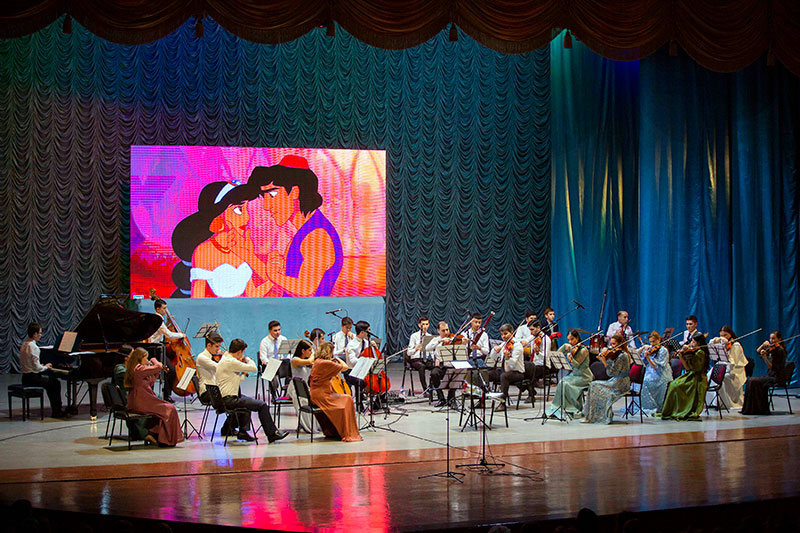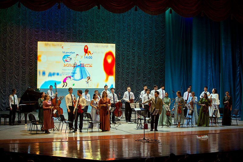 “Dunno in the Sunny City” (“Незнайка в Солнечном городе”), “The Bremen Town Musicians” (“Бременские музыканты”), “Pinocchio” (“Буратино”), “The Nutcracker” (“Щелкунчик”), “Chunga, Changa” (“Чунга, чанга”)… Beautiful music from these and other cartoons, accompanied by cheerful and mischievous characters on the screen, captivated the audience of the hall, consisting mostly of kids.