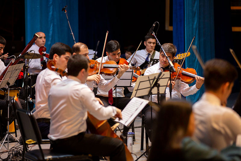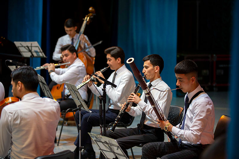 Then there was a surprise. We are used to seeing Rovshen Nepesov at the piano or at the conductor's stand, but this time he took a seat in the auditorium, providing the conductor's baton to Dovletmammet Okdirov and Eziz Niyazov, and the piano to Shaislam Kamiljanov.