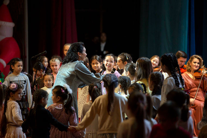 The film "Father Frost and the Snow Maiden" (“Дед Мороз и Снегурочка”) from the TV series "Well, you wait!" (“Ну, погоди!”) was presented in person, and Selbi Annadurdyeva acted as Santa Claus, and Selim Gurbansakhetov as the Snow Maiden. The humorous number amused the children well.