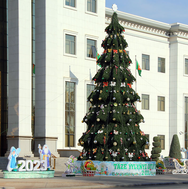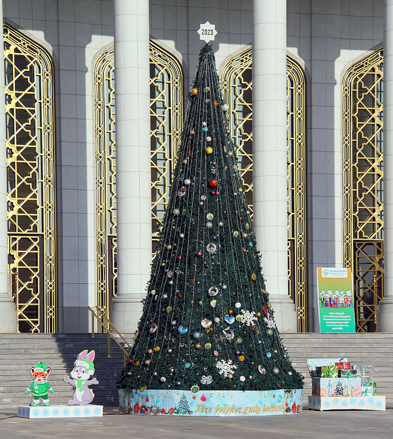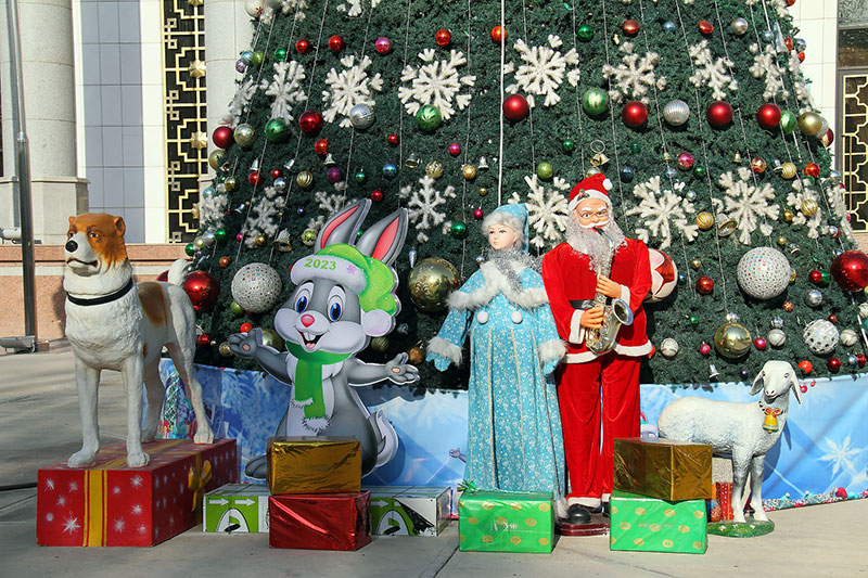 On the eve of the New Year, having swept around Ashgabat, Ayaz Baba and his companion Garpamyk https://turkmenistan.gov.tm/ru/post/68717/zazhglis-ogni-na-glavnoj-novogodnej-yolke-strany lit the lights not only on the central Christmas tree. But also on the decorated New Year's beauties installed on the facades of large shopping centers, urban enterprises and organizations, on the squares in front of the buildings of the «Turkmen White Yurts» in all velayats of the country.