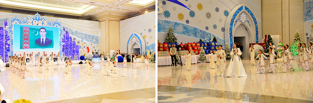 Children of “Döwletliler Köşgi” Palace expressed their gratitude to the head of the state and Hero Arkadag for happy peaceful childhood, constant care and attention as well as kindest wishes and congratulations with the New Year.