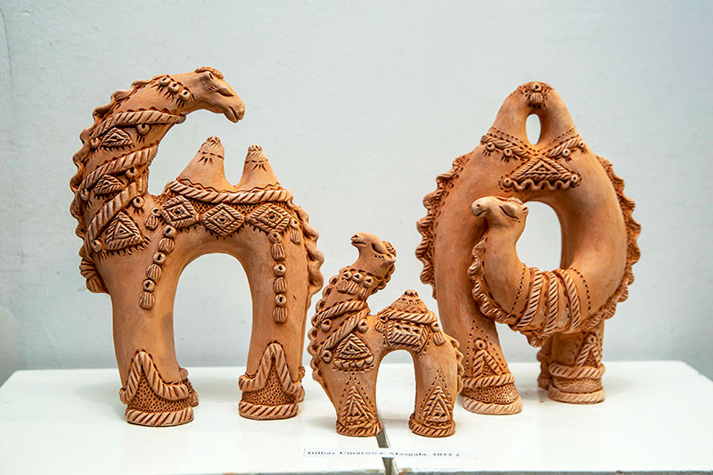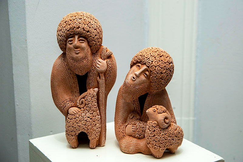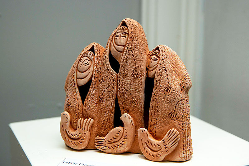 Dilber, like her husband, always has a pencil at hand. Her terracotta figurines represent cute characters in various scenes from the life of the villagers. «Cranes», «Neighbours», «Family», «Caravan», «From the Bazaar», «Grandmothers», «Brothers», «Friends» and other compositions were first presented by Dilber to the audience. And again, visitors to the exhibition enthusiastically met cute yashuly, cute kids who love to talk to women, camels and female camels. Everything that the hands of Dilber touch acquires warmth and cordiality, so each figure pleases the audience with its originality.