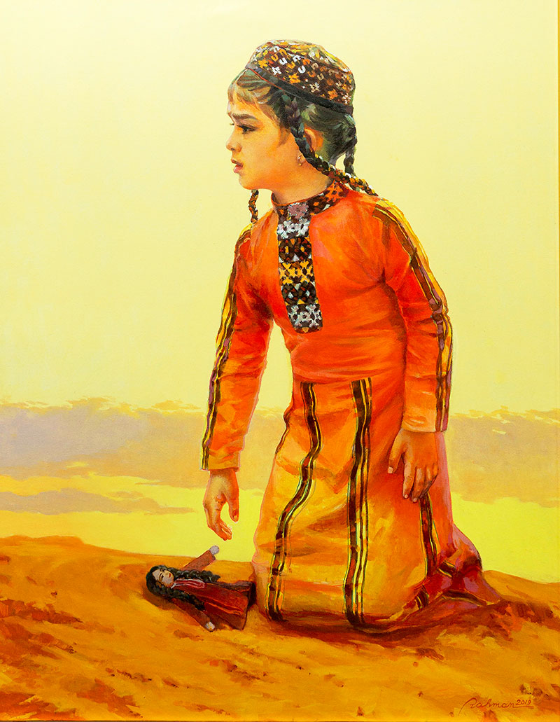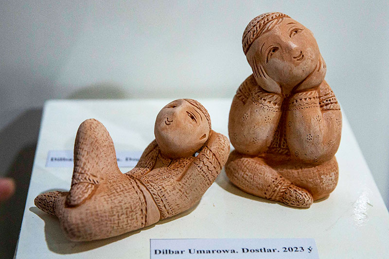 Dilber Umarova exhibited her miniature terracotta sculptures for the first time at the Exhibition Centre in 2008 for her husband's 40th birthday. Her collection was also a huge success; the terracotta figurines of charming villagers literally captivated the visitors of the exhibition. Dilber and Rahman are graduates of the Tashkent theatre and art institute (now the State institute of arts of Uzbekistan). As Ayjan Kadyrova, head of the department of art history at the State academy of arts of Turkmenistan, noted,the artists work in different directions, but they are brought together by harmony in the created works. Everything they create is not invented, but taken from life.