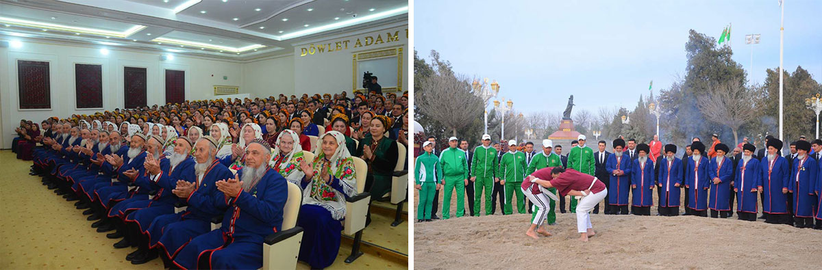 In the solemn meeting, heads of the national centre of trade unions, velayat, and etrap khyakimliks, deputies of the Mejlis, distinguished workers of various institutions and enterprises, agricultural workers, honoured elders and grey-haired grandmothers, representatives of public organizations and mass media took part.
