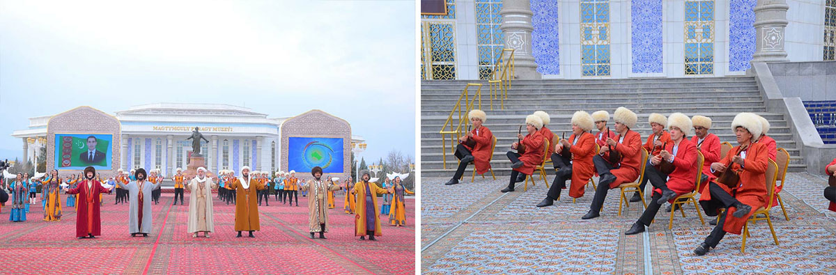 Actors of theatre, workers of culture and art, creative groups who prepared a grand program of songs and music to add joy and happiness to the atmosphere of the holiday welcomed numerous guests of the solemnity on the square in front of the museum. In honour of the significant date, there were set up white Turkmen yurts “ak oy“, exhibitions of agricultural produce and decorative and applied arts, exposition of paintings and books were organized there.
