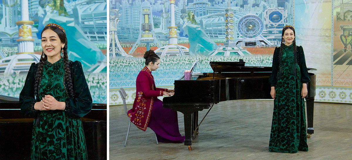The concert was led by a 3rd year student of the Faculty of Opera Dunyagozel Begaliyeva, the owner of a coloratura soprano, like Medeniyet Shahberdiyeva.
