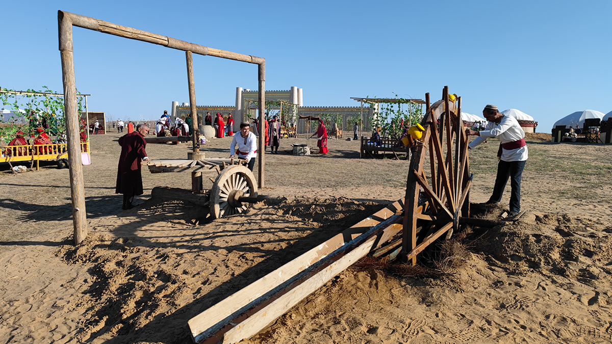 An agricultural exposition was also deployed in the exhibition part of the town, presenting the rich Turkmen traditions of agriculture and various products of domestic producers. In addition, a field camp was recreated, where methods for irrigating gardens and fields were demonstrated, in particular, the operation of a large spinning wheel - chigir. This is an ancient water-lifting device with scoops fixed on it, thanks to which in the old days the issues of irrigating fields, orchards, vineyards and melons were solved.