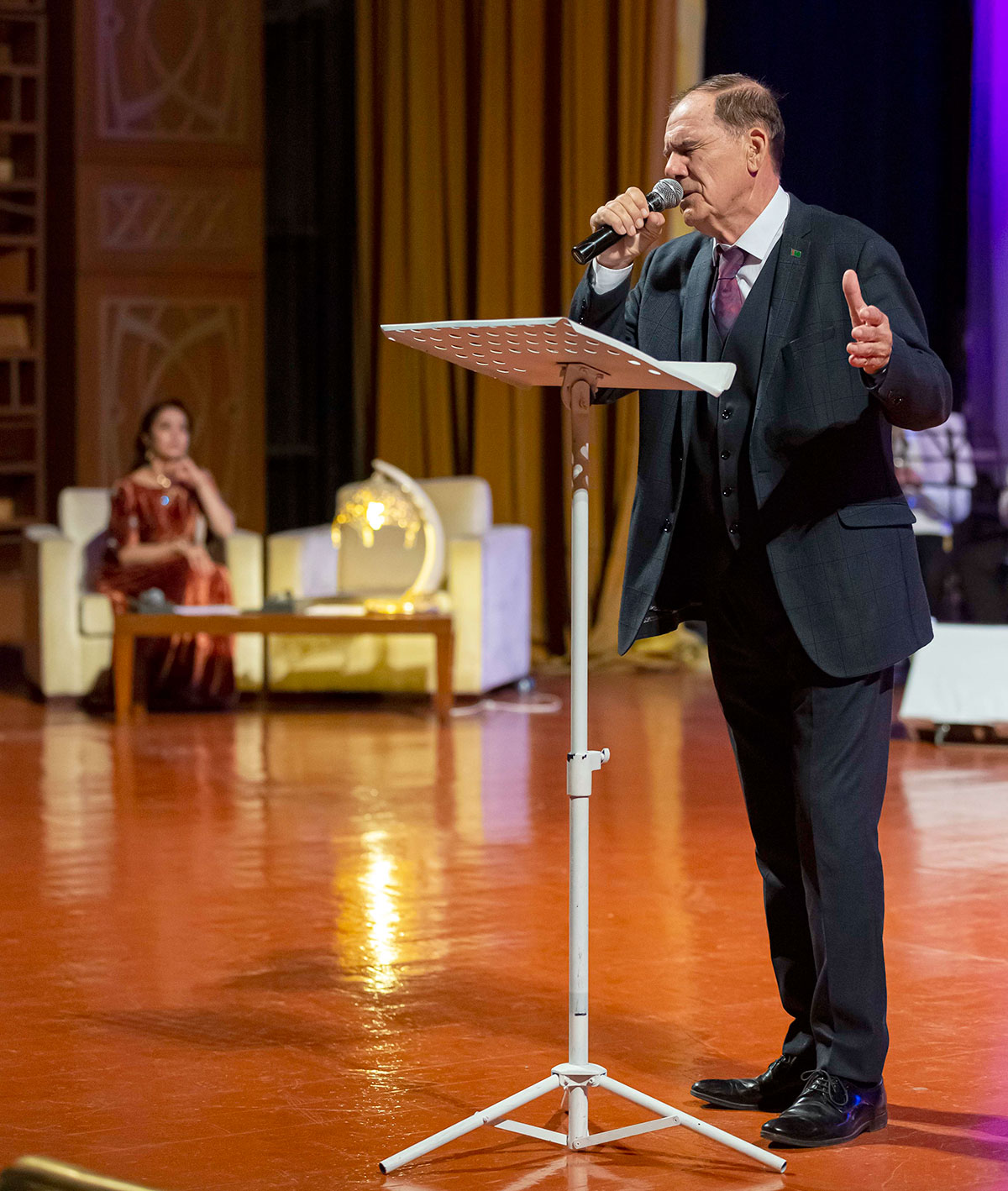The People's Artist of Turkmenistan Atageldi Garyagdyyev performed amazingly songs from the repertoire of Muslim Magamayev. The songs «Melody» and «Blue Eternity» in his performance caused a flurry of applause in the hall.