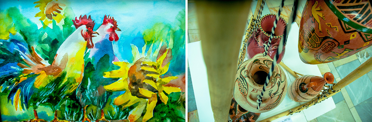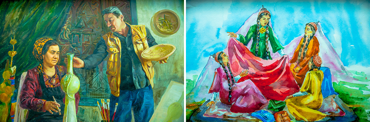 An interesting painting exposition was presented by Jennet Annagulyyeva. Small-sized paintings tell stories from the life of the village and the city. The audience especially liked the roosters painted in gouache.