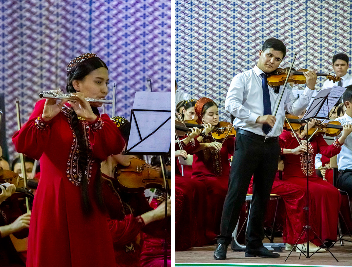 The concert program also included Symphony of People's Artist of Turkmenistan Danatar Khydyrov and Concerto for Violin and Symphony Orchestra by Finnish composer Jean Sibelius. The soloist of the Concerto was Bakhram Dolyev, who once again showed his virtuosity in playing the violin.