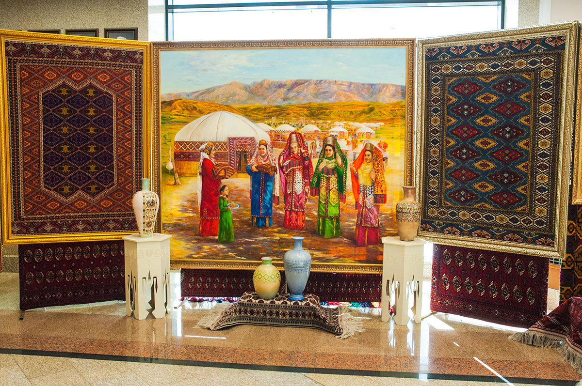 Before the start of the solemn part, its participants viewed the exhibition in the lobby of the Mukams Palace, which presented various products created by the talent and diligence of national artisans, including Turkmen women, works of arts and crafts, national silver jewelry.