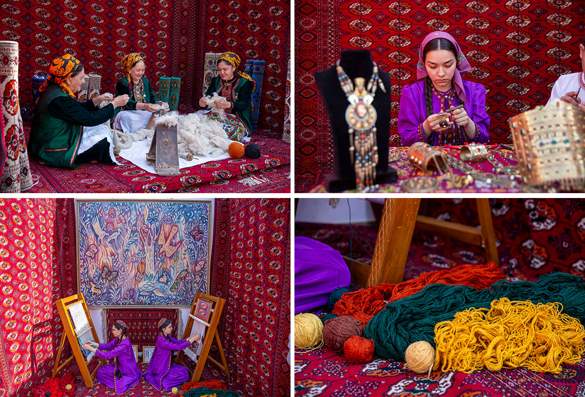 As part of celebrations, under the Decree of the President of Turkmenistan, the women carpet weavers of carpet enterprises were awarded the honorary title “Türkmenistanyň at gazanan halyçysy”.