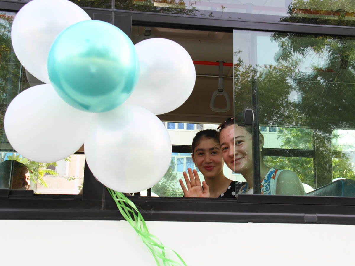 To sounds of music, schoolchildren from the capital and velayats headed towards festively decorated buses, which soon took them away towards to summer adventures.