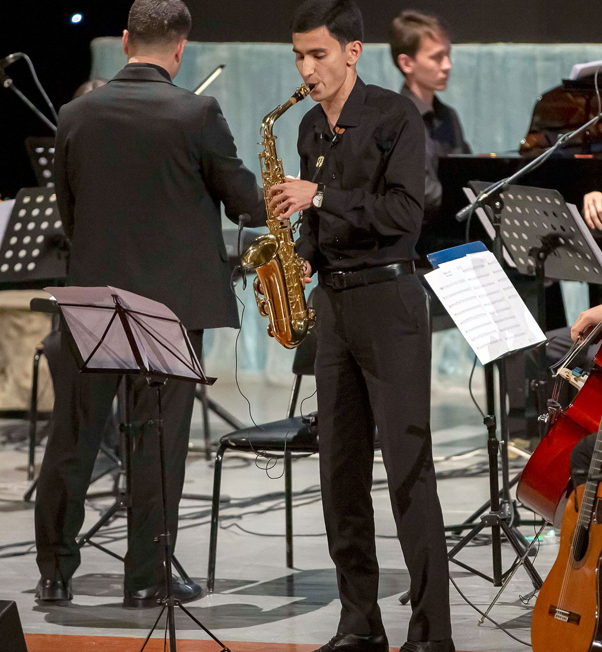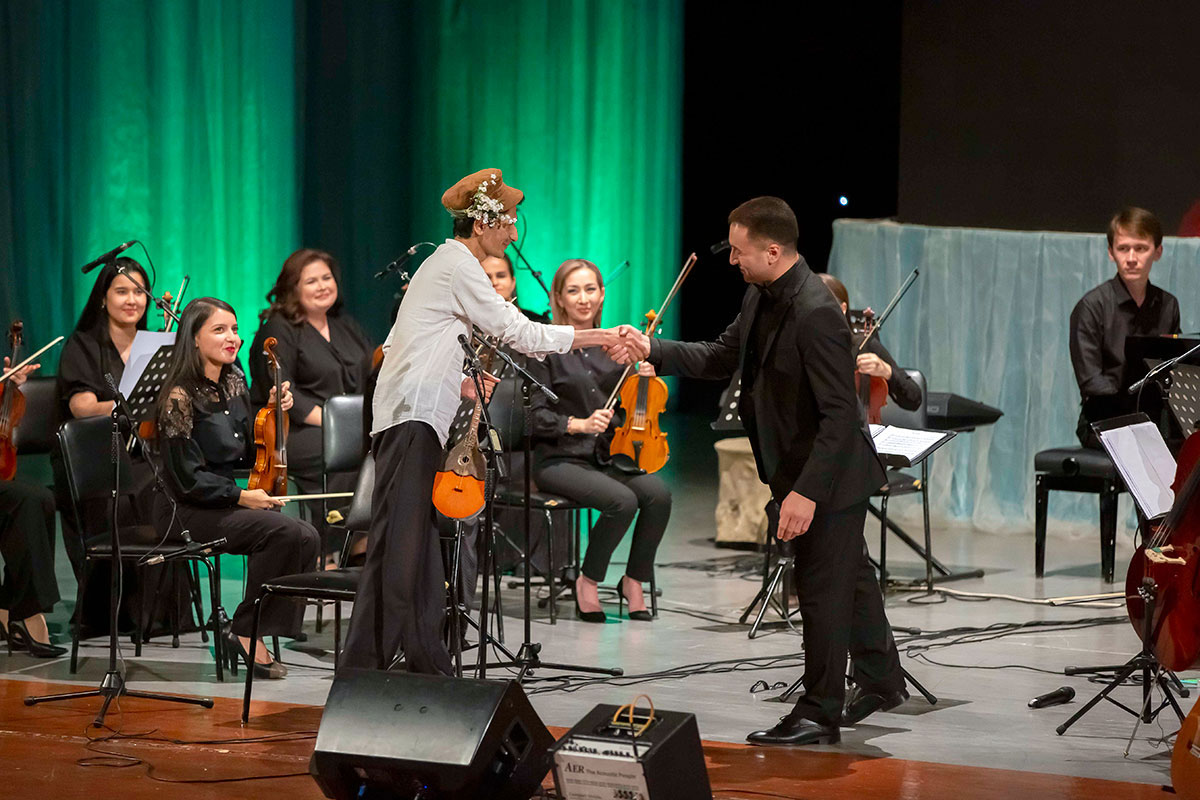 At the end of the concert, Tahir Atayev invited all the soloists to the stage – Guvancha Shammyev (accordion), Mansur Sharipov (vocalist), Aymurat Saparmuradov (prima dutar), Emir Bayramgeldyev (flute), Shirkhan Batyrov (saxophone) – and asked the audience a question: "Who do you want to hear for an encore?". And all as one answered: "Balalaika". The fact is that prima dutar, the Turkmen folk musical instrument, resembles the Russian folk instrument balalaika in appearance and sound.