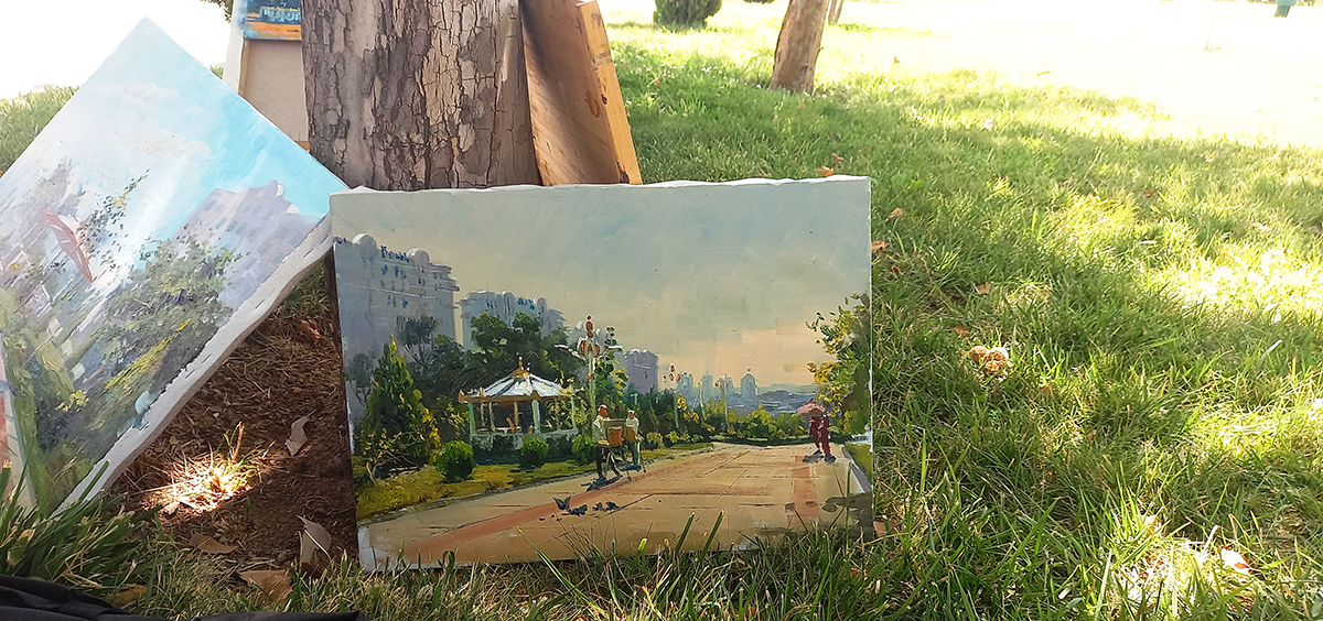 Graduates continued to defend their diplomas, and Aimee Erickson went to one of the capital's parks, where a plein air was held for students of the Academy of Arts. The young painters have already placed their easels in different parts of the park area and have begun to create sketches with oil paints.
