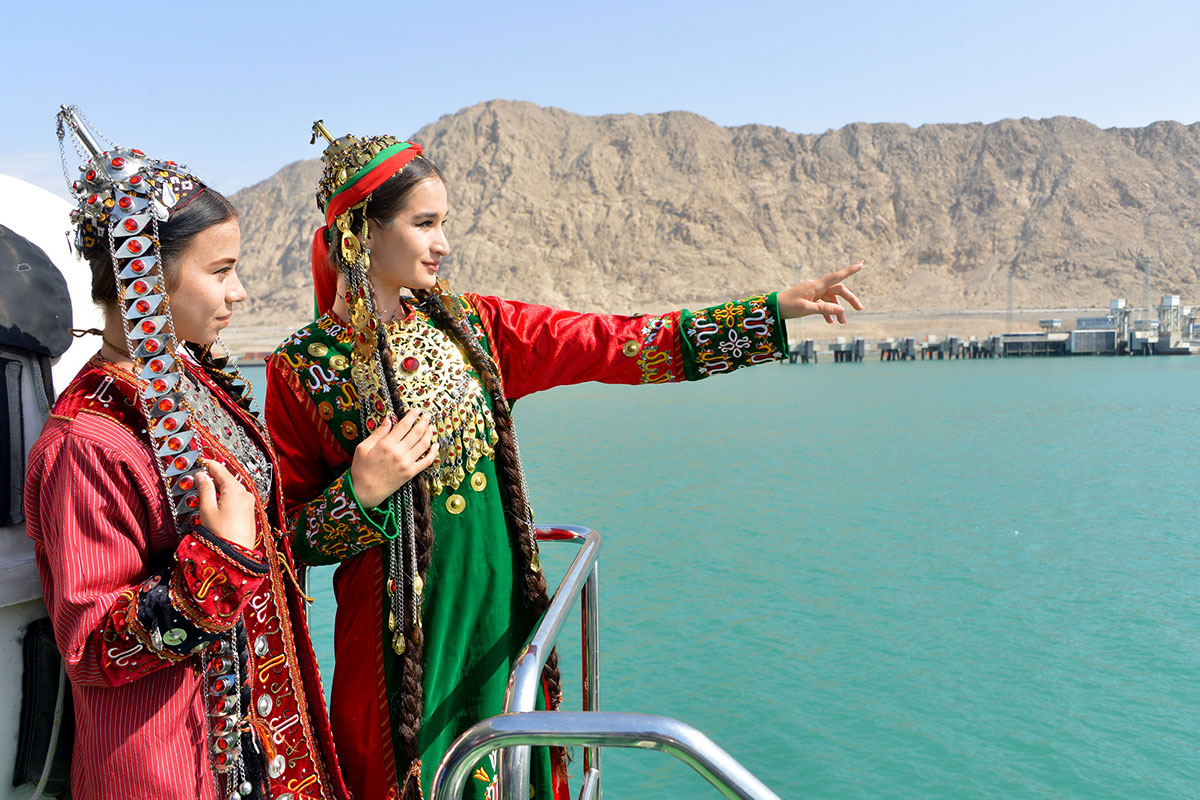 Then, according to the program, a concert of dance and folklore groups of Turkmenistan participating in the international Festival was held on the big stage in the interactive park of fountains on the shore of the Caspian Sea. Dance and folk groups representing all regions of Turkmenistan performed.