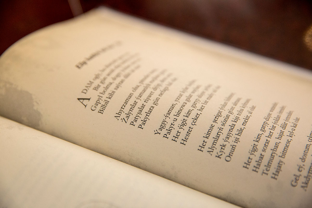 A solemn meeting was held today at the Magtymguly Institute of Language, Literature and National Manuscripts of the Academy of Sciences of Turkmenistan on the occasion of handing over the National Leader of the Turkmen People, Chairman of the Halk Maslakhaty of Turkmenistan Gurbanguly Berdimuhamedov a two-volume book “Magtymguly Pyragyny goşgular diwany” (A collection of poems by Magtymguly Fraghi) as a gift from the Spiritual Leader of the Islamic Republic of Iran Ayatollah Ali Khamenei.