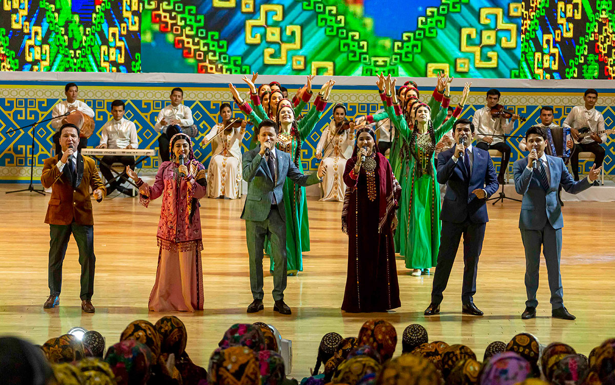 Today, solemn events were also held in regional cultural centers of Ak bugday etrap of the Ahal velayat, Balkan, Dashoguz, Lebap and Mary velayats. National dances were performed in the buildings of "Türkmeniń ak öýi", beautiful songs were sung praising independent and neutral Turkmenistan.