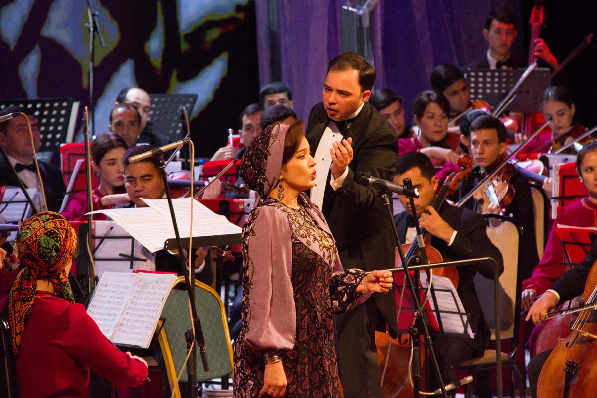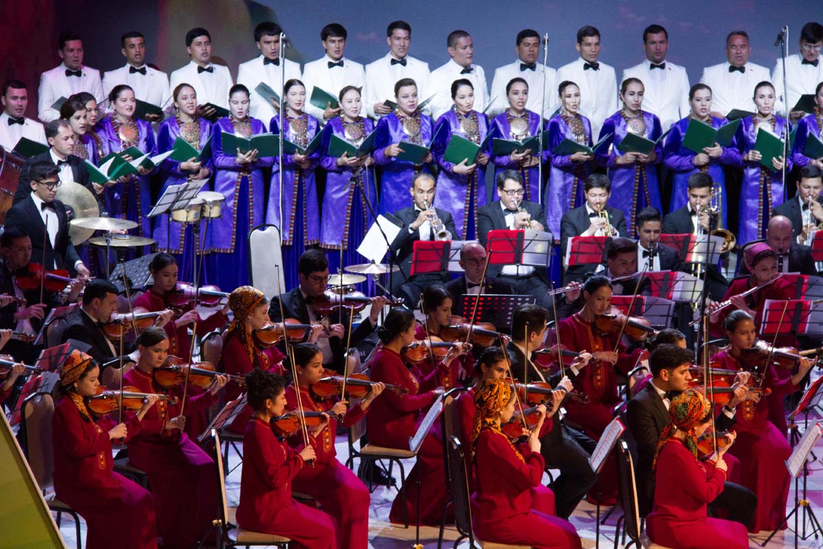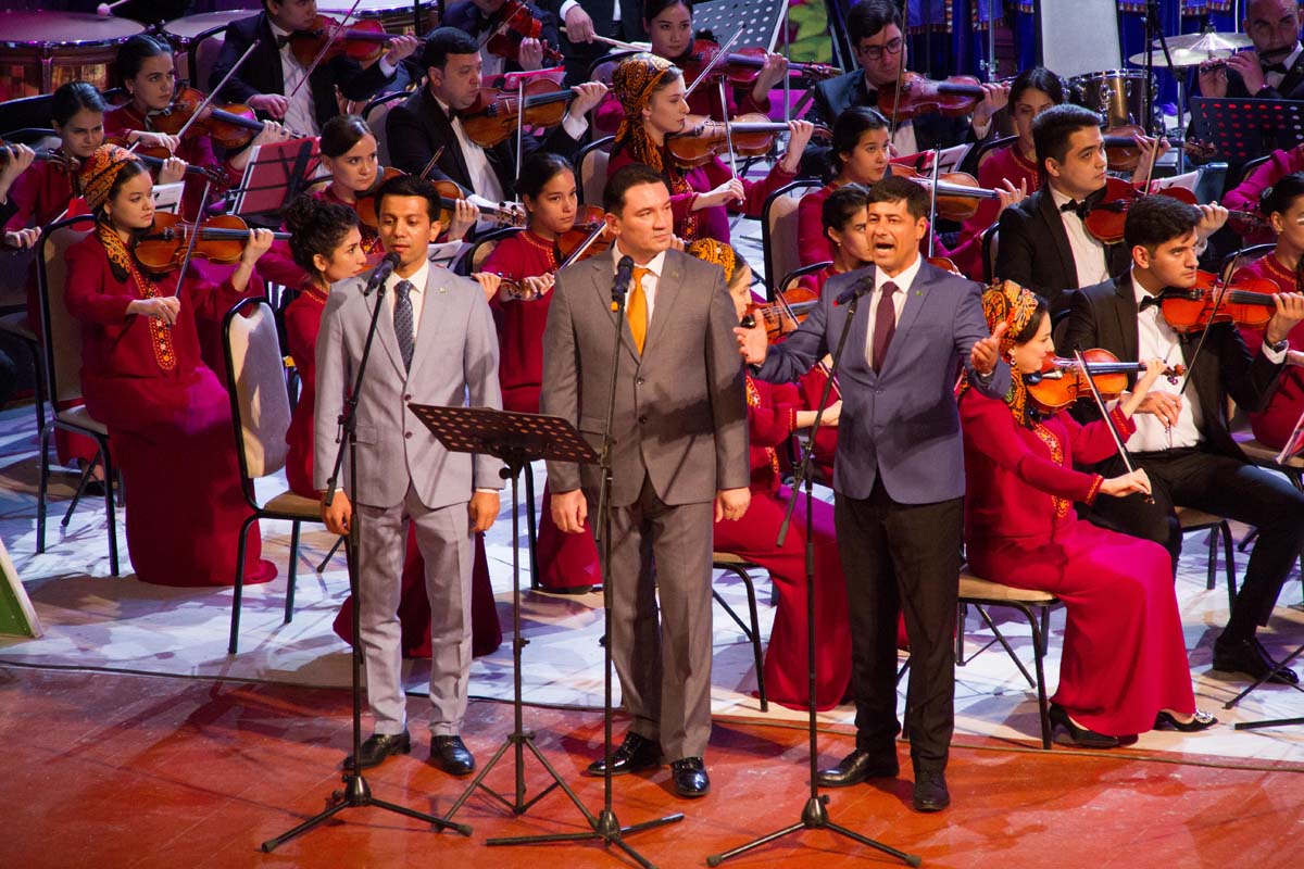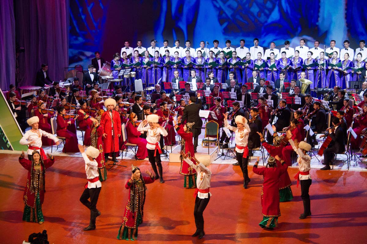 People's artists, the state choir and the symphony orchestra of Turkmenistan, folklore groups presented their unique performing skills to the audience. Literary and musical compositions were replaced by modern musical works and choreographic performances.