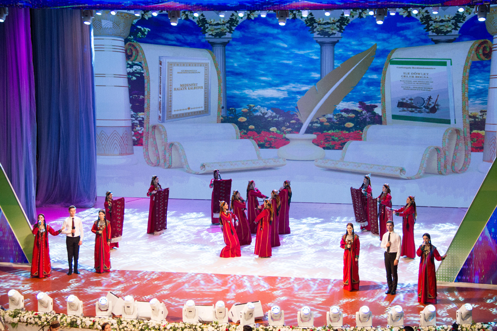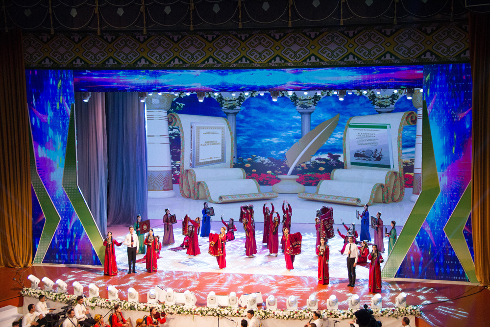 At the end of the concert, the soloists and all its participants performed the song “Bagtly biz Siz bilen, Arkadagly Serdarym!”, which sounded as the anthem of the era of the Revival of the new epoch of the powerful state – the era of large-scale progressive transformations, the true flowering of national culture. The monitors displayed footage reflecting the creative pace of modernity, and the successes of representatives of Turkmen art.
