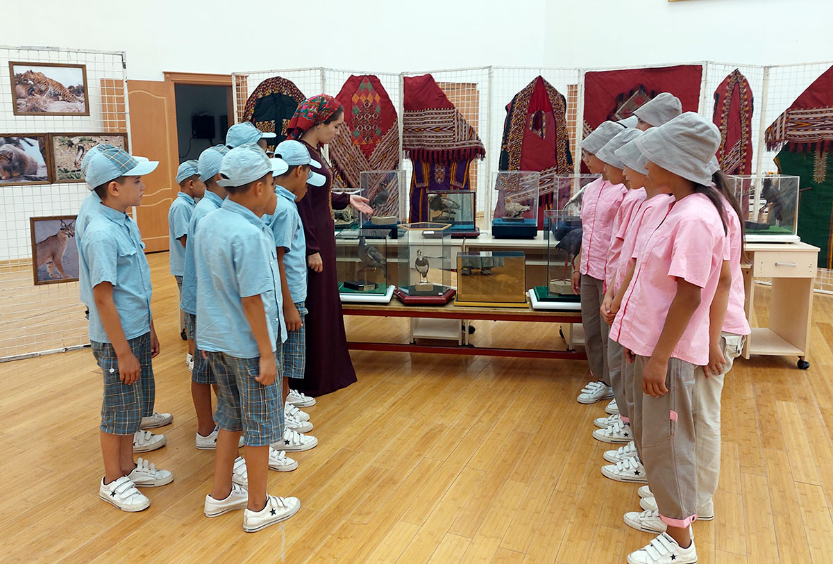 Ogulshat Dadebaeva and Chemen Kerimova, museum guides, familiarized the children with various species of birds, fish, turtles, amphibians, snakes and other representatives of wildlife, which are almost impossible to see in the city. Special emphasis was made on endemic, relict and endangered species included in the Red Book of Turkmenistan, which are subject to strict protection. Much attention was paid to the protection of flora and fauna of Turkmenistan and nature in general.