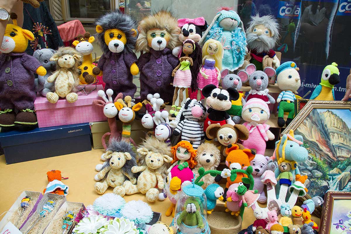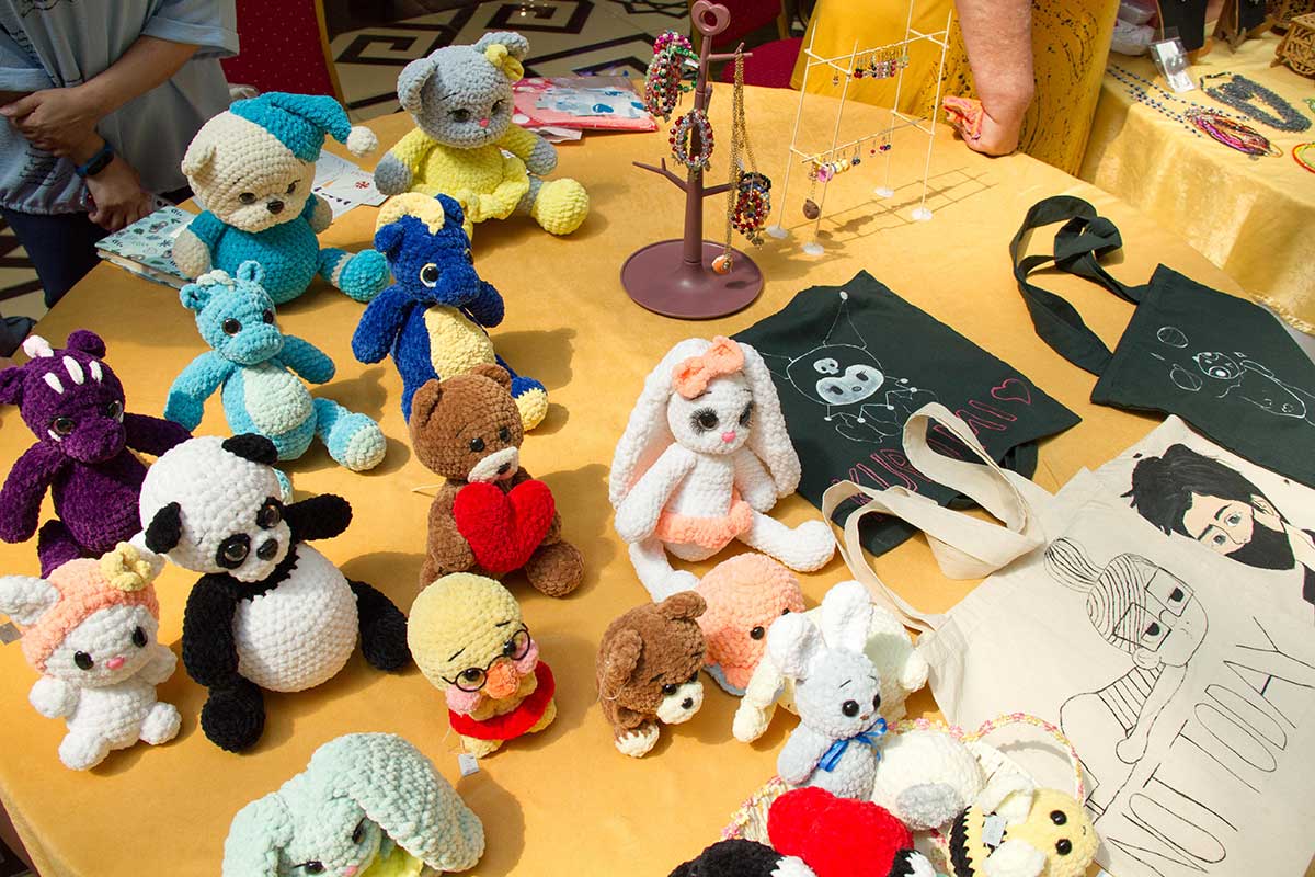 It is impossible to pass by knitted toys: charismatic Brownie, duckling, kitten, famous cartoon parrot and many other dolls exhibited by Irina Babichenko and Lyudmila Babaniyazova. Without wasting precious time, Irina is in the process holding a fair knits another doll. Passion for handmade teaches to cherish every free minute.