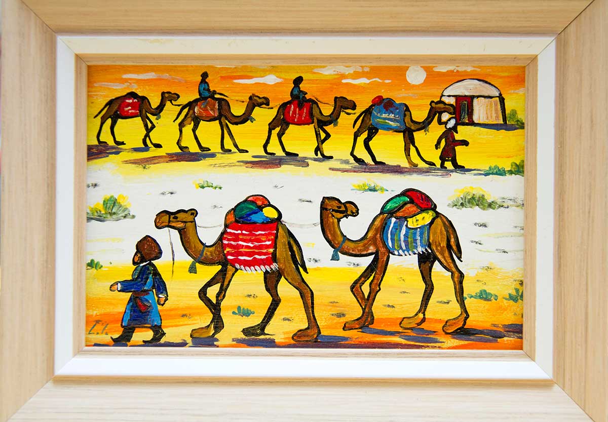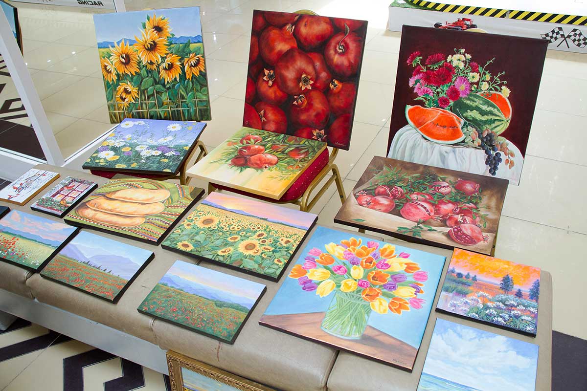 The famous artist Claudia Durdyeva exhibited in front of buyers of the exposition of their paintings, but the main pride of Claudia is these are folk craftsmen, her daughter Maya Saparova and granddaughter Gurbangul. Perhaps, Gurbangul is the youngest participant of the "Fair of Masters", she only 8 years old. And if her mother makes installations of plants, filled with epoxy resin, Gurbangul simply dries beautiful plants and puts them in frames. In other words, grandmother, mother and granddaughter presented at the fair products for interior decoration.