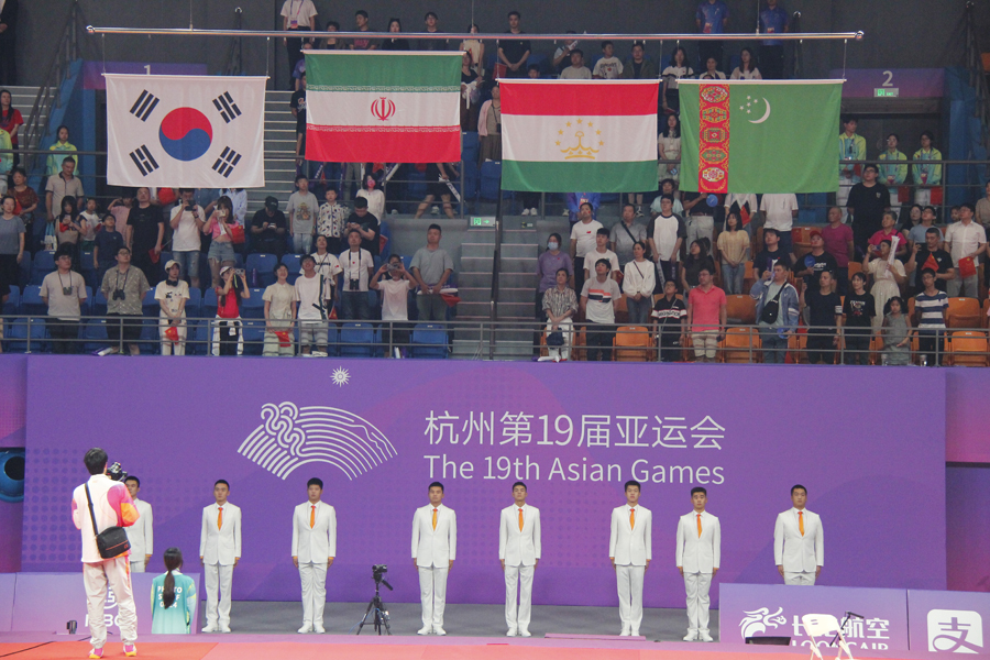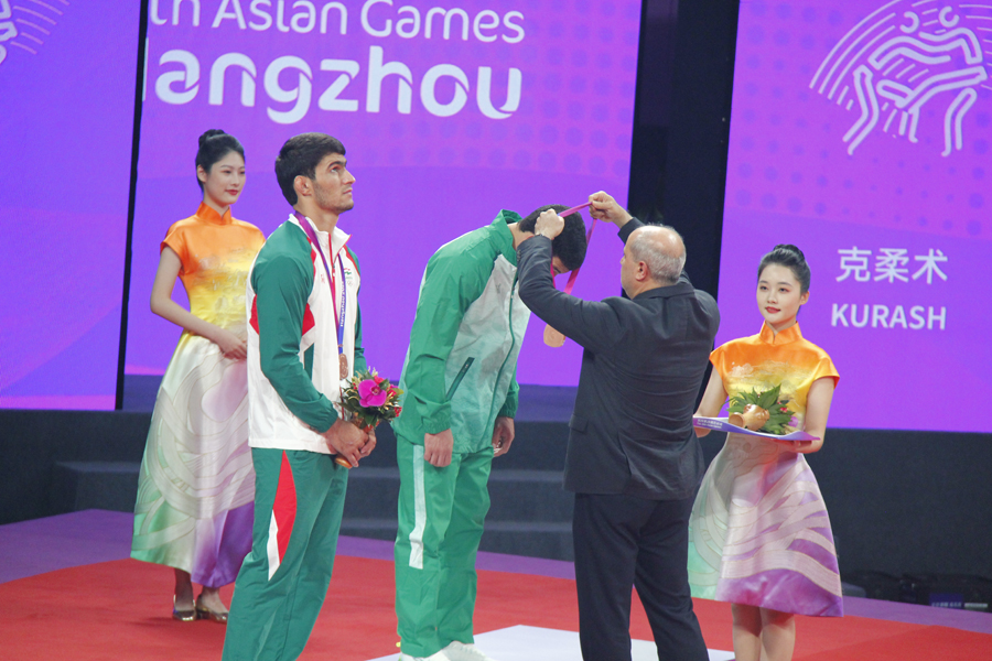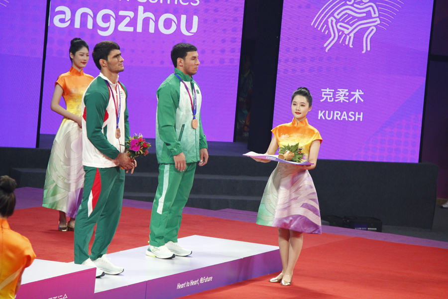 So, the kurash wrestling competitions in the program of the XIX Summer Asian Games have been completed. And they ended with the third raising of the State Flag of Turkmenistan during the three-day tournament at the Xiaoshan Lingpu Gymnasium. Previously, the silver medal in our team was won by Tejen Tejenov (over 90 kg), and the bronze medal was won by Ainur Amanova (up to 52 kg).