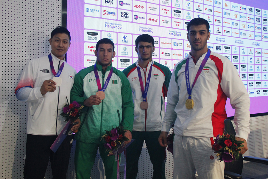 Fortune did not change the Iranian this time either. With clean wins in the semifinals and the final over 41-year-old Mingyu Kim (Republic of Korea), Sadegh Azarang won the fourth gold for the Iranian team, represented at the Asian Games by 289 athletes in 34 disciplines. The silver went to Mingyu Kim. And two bronze medals were awarded to Khaknazar Nazarov (Tajikistan) and Ishanmyrat Atayev.
