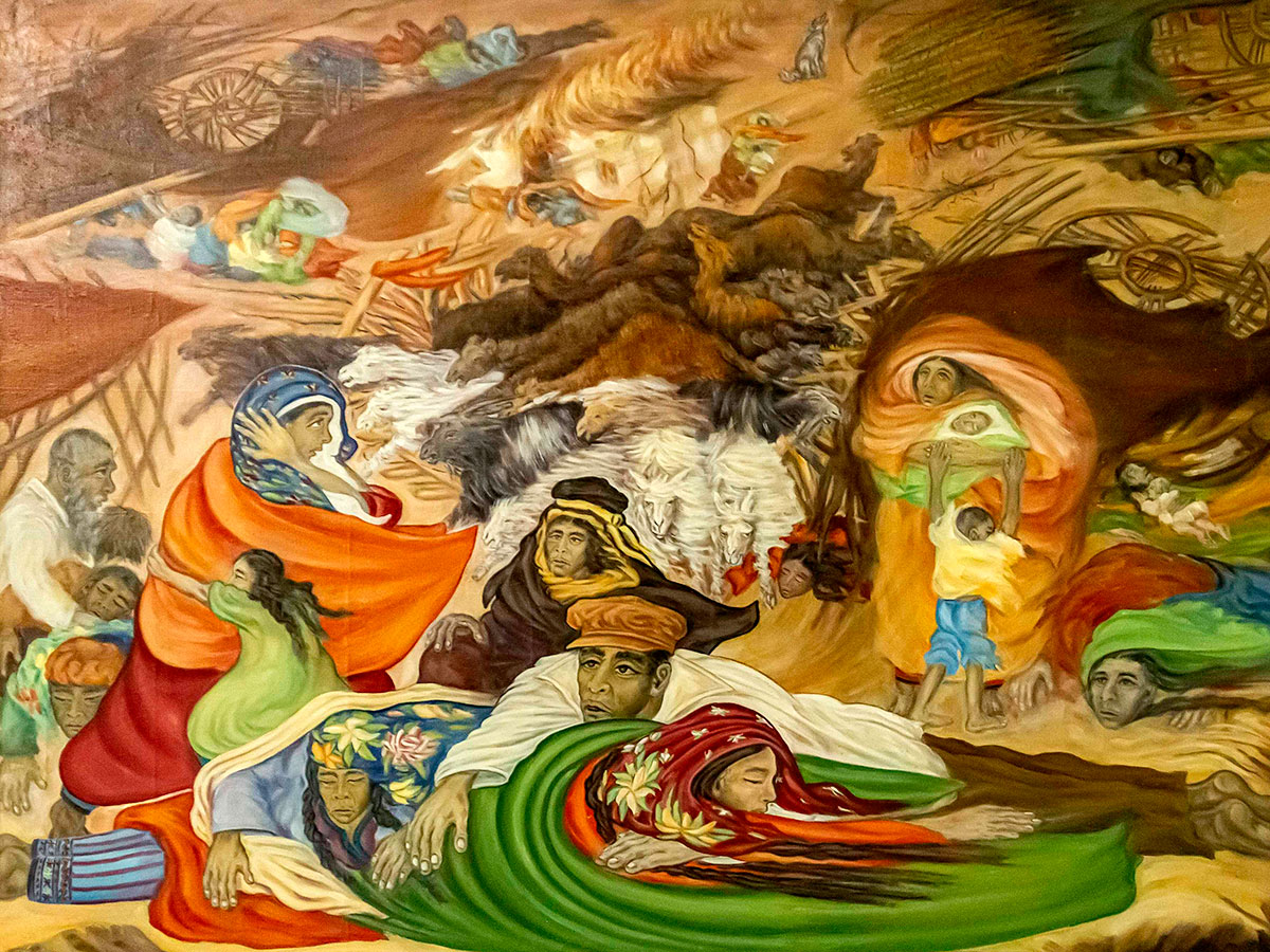 The artist Toimammet Esenmammedov conveyed horror in his painting, which people experienced when they were at the mercy of natural disasters.