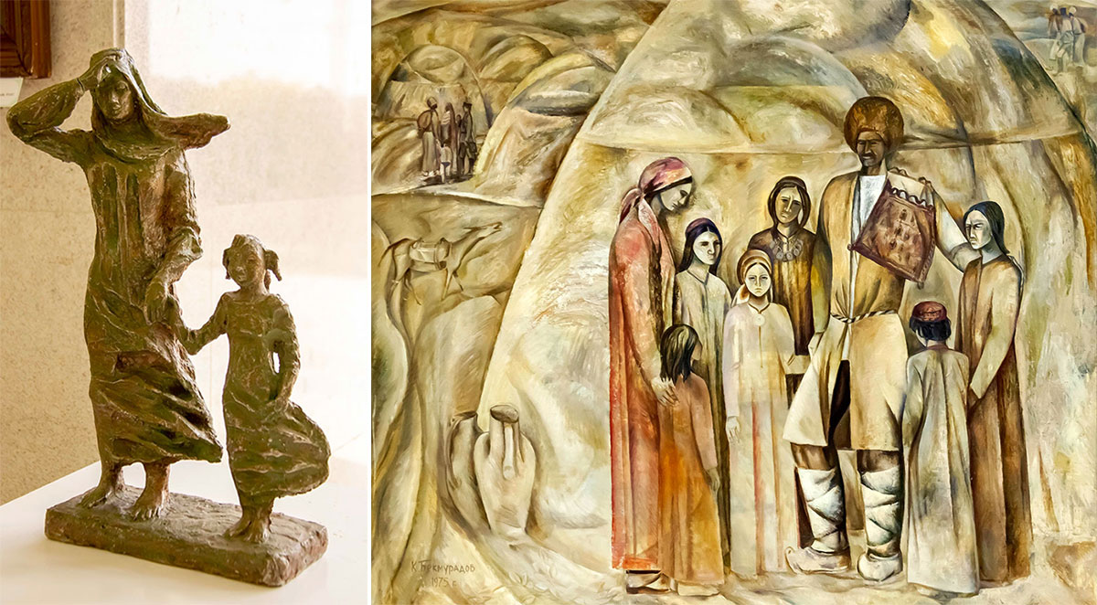 People's Artist of Turkmenistan Yakub Annanurov is the author of the painting “Battle of Geoktepe”, in the foreground depicted a family in fear leaving their native places, and in the background - dying fires and dead bodies. Thus, the author wanted to emphasize that not only warriors, but also peaceful the population is experiencing the scourge of war.