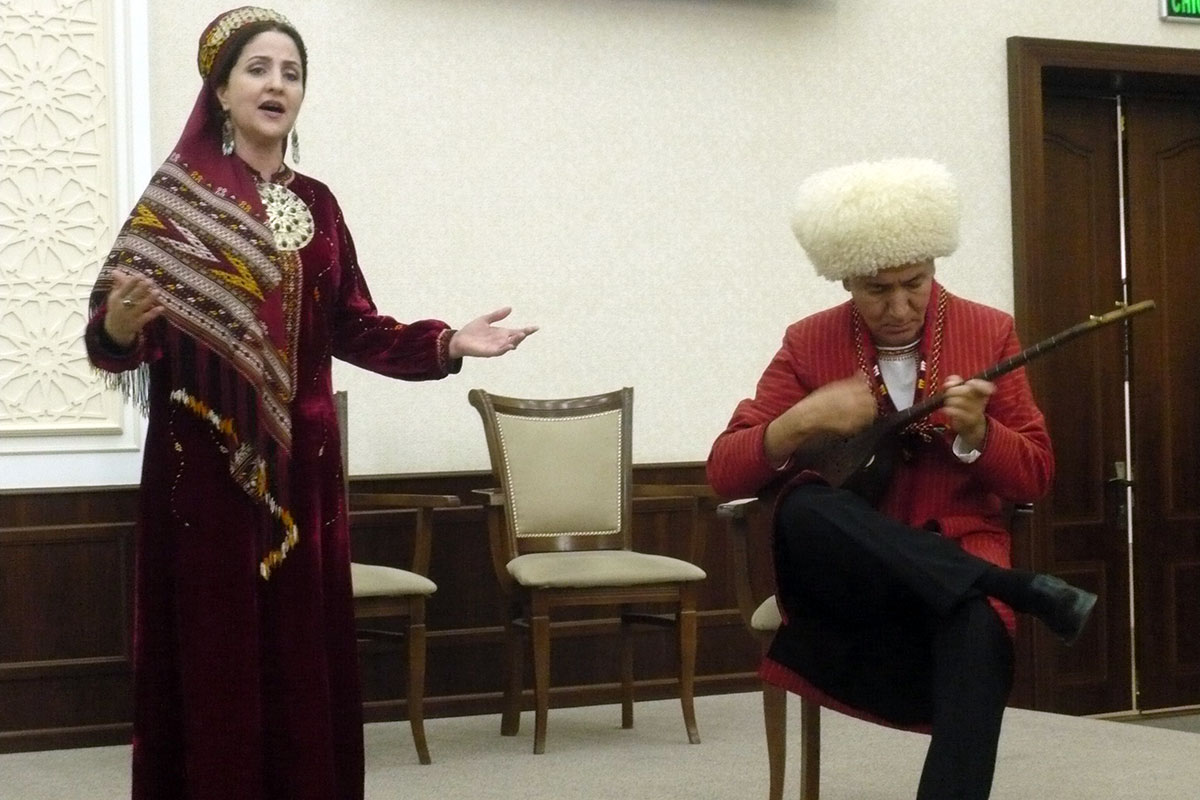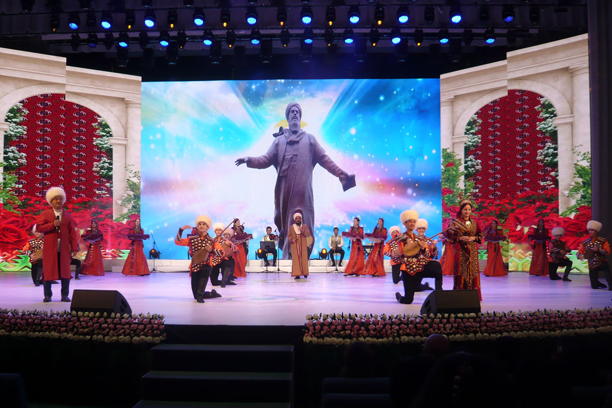 In the meeting, Turkmen workers of art performed songs on poems by Magtymguly Fragi, which were met by the friendly applause of the gathered.