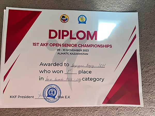In September of this year, Bayry Bayryyev took second place in the Open absolute weight category at the World Shotokan Karate Championship held in Tashkent, held under the auspices of the World Shotokan Karate Federation (WSKF). And in October, he won the first medal in the history of Turkmen sports in karate (WKF) at the Asian Games, which were held in Hangzhou (China).
