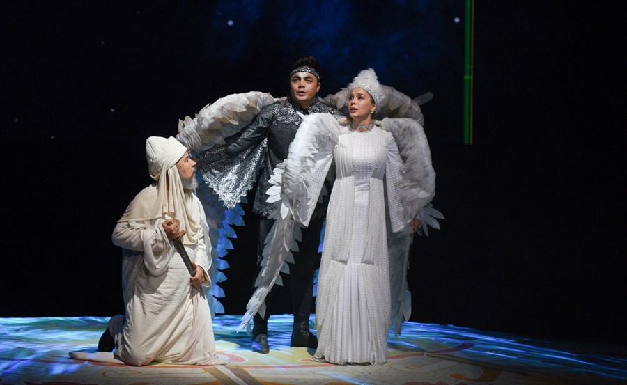 The production director of the play is Eziz Ishankuliyev, who skimped on mystical elements in the first part of the production scenography.