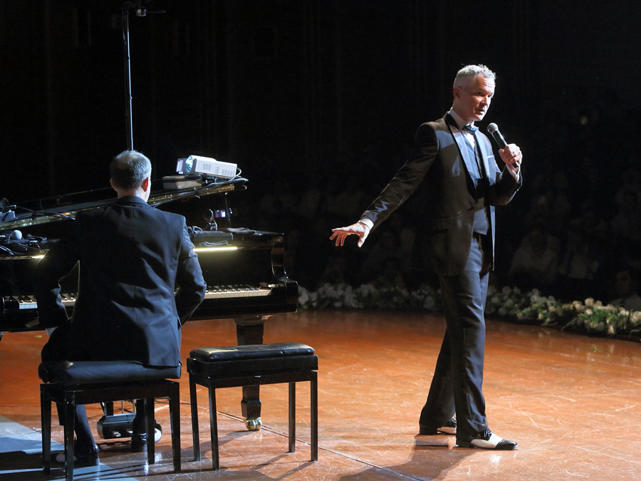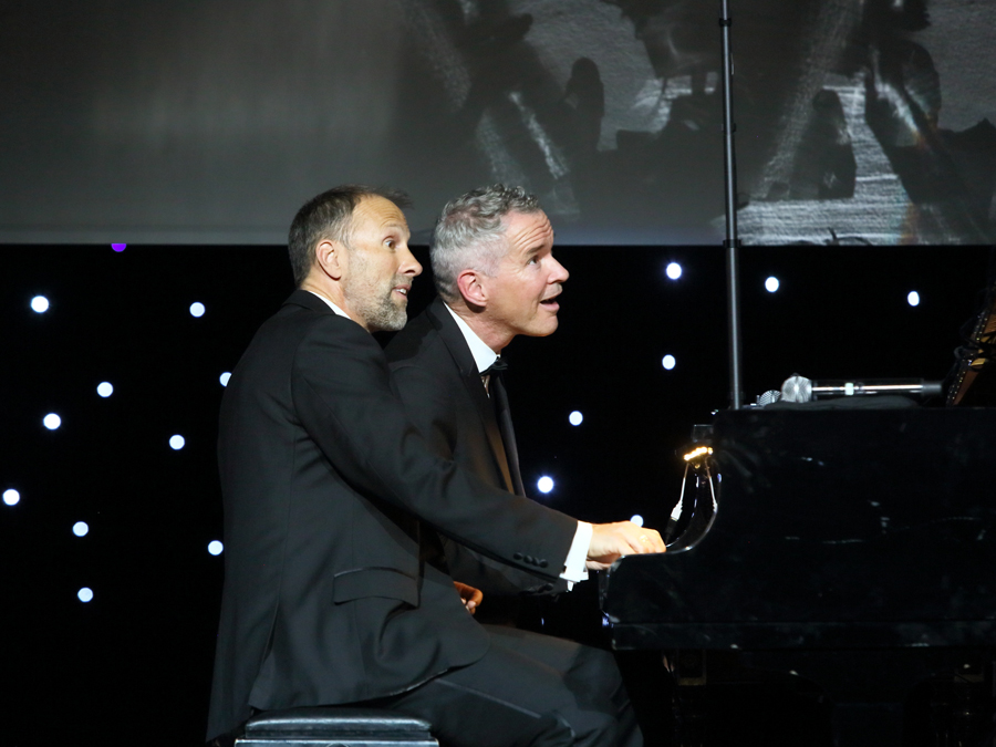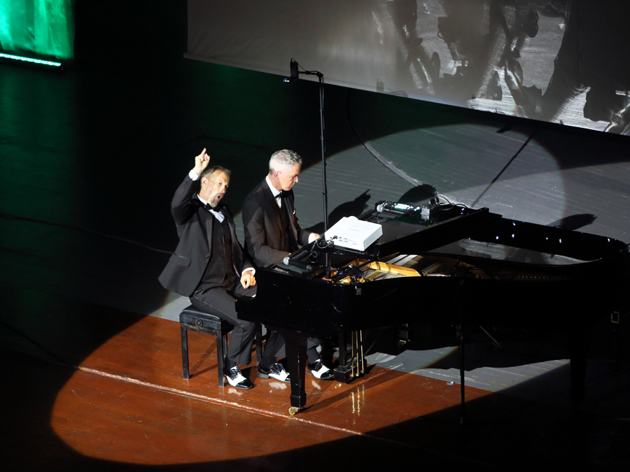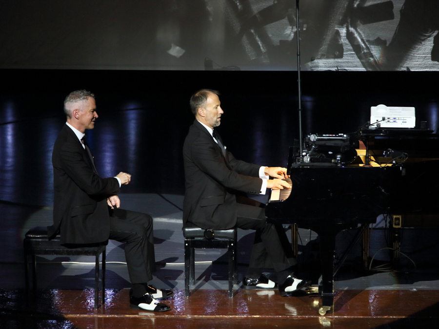 Marcel and Stephan are performing as a duo for 27 years. According to them, they have given 1,000 concerts in 100 countries, including Tajikistan and Kazakhstan. "Playing the piano is not difficult at all," the cheerful musicians claim, "you just have to press the right key at the right time." On the stage there is a screen on which the faces and hands of the pianists are broadcast.