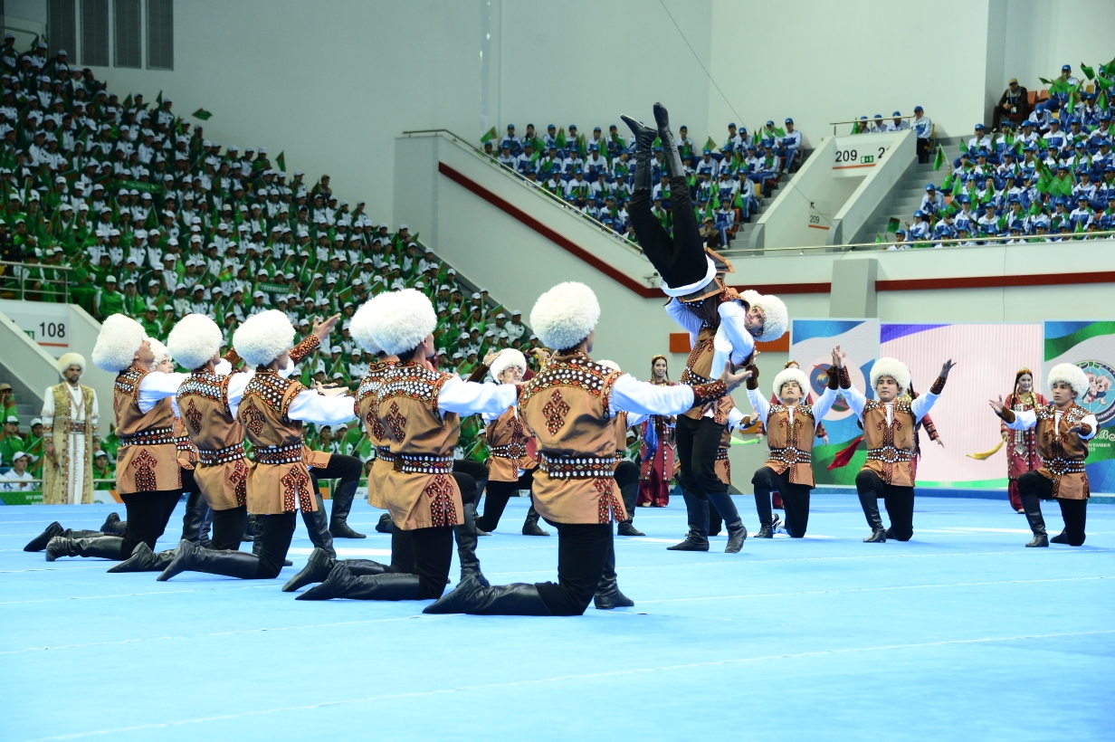 Next, the audience was presented with a number of dance numbers dedicated to the national Turkmen wrestling, Turkmen carpets, and cultural heritage items. And of course, what would a holiday be without the fiery ancient magical dance kushtdepdi! Being a kind of personification of the inextricable connection of times and generations, it has become an integral part of not only the national, but also the world cultural heritage. Thus, by decision of UNESCO, kushtdepdi was included in the Representative List of the Intangible Cultural Heritage of Humanity.