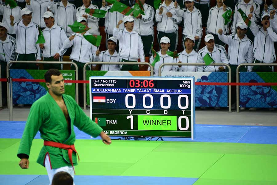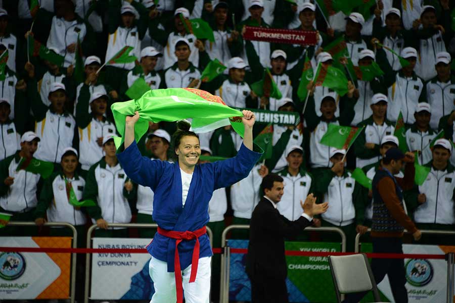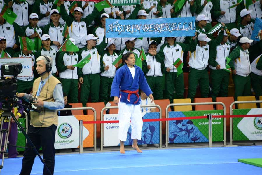 In our country, kurash has gained a prompt development after establishment of the National Federation of this single combat in December 2014. After the admission of the Kurash Federation of Turkmenistan to the corresponding International Association (IKA) and the Kurash Confederation of Asia and Oceania (KCAO), since 2015, Turkmen masters of this type of wrestling began to participate in world championships and other major international competitions, including Asian beach games, Asian indoor and martial arts games, World martial arts games and Asian championships. In different years in all those competitions, our compatriots brought home medals of various denominations. Until the present world championship in Ashgabat, Turkmen sportsmen have taken part in four world kurash championships in Iran, Turkey, Republic of Korea and India, at which 21 times they stood in the honour platform and won a total of 2 gold, 7 silver and 12 bronze medals.