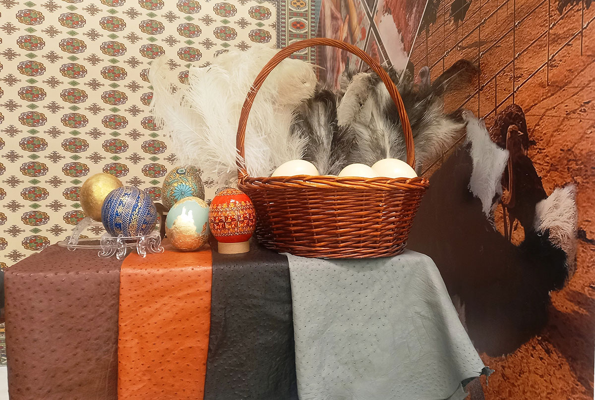 According to the producers, with proper care, one ostrich can provide 35-45 kilograms of meat and approximately one square meter of ostrich leather. Establishing the production of ostrich leather is one of the farm's current objectives. Soft and elastic ostrich leather has high strength and is waterproof compared to crocodile leather.