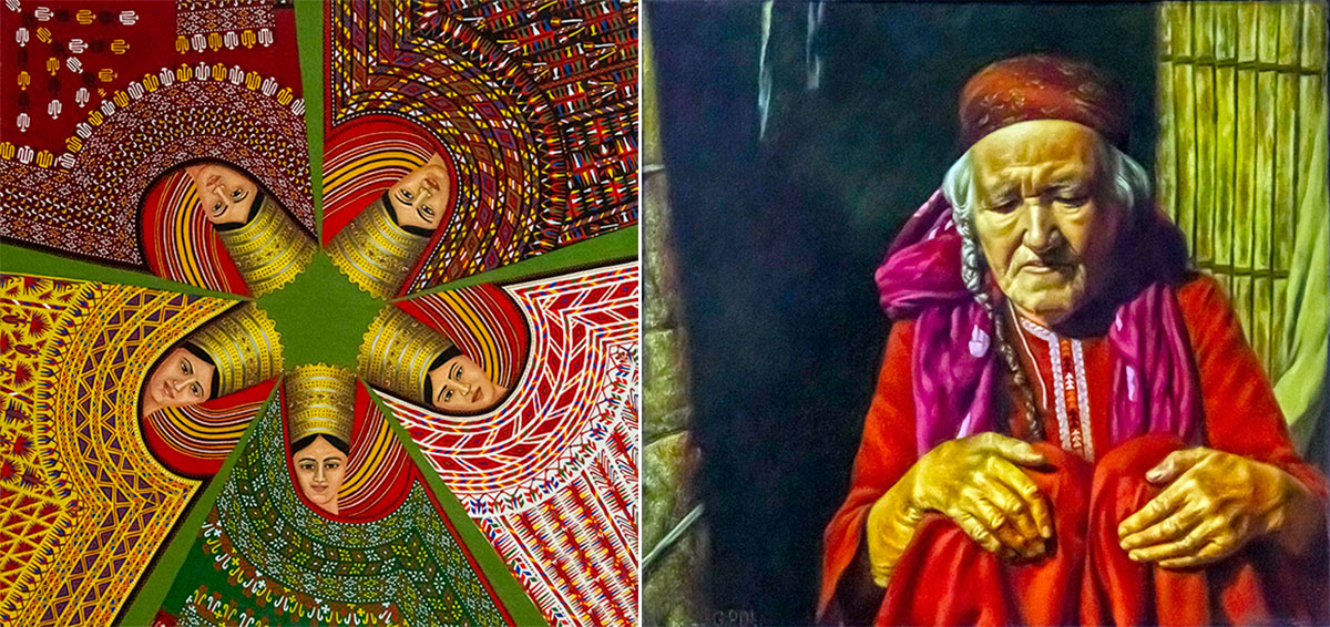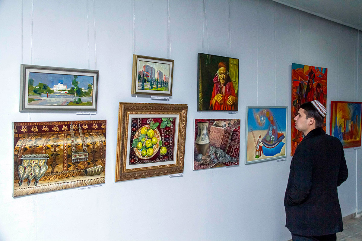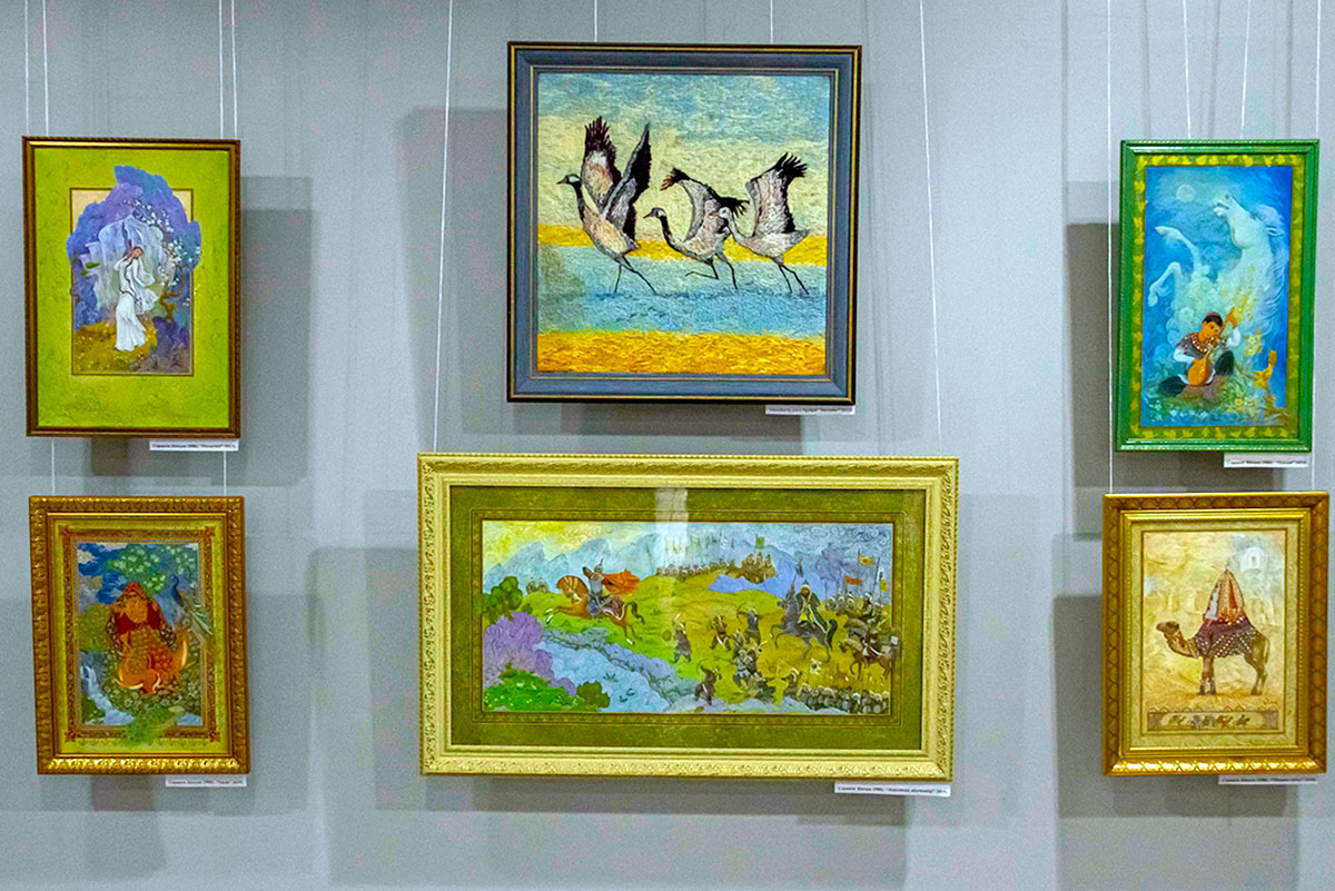 A large exposition of paintings was presented at the exhibition by Saparmammet Meredov. The artist has a special style of painting - a cloudy background, blurry figures with thoughtful faces. His paintings are always recognizable. One of the most impressive works is «And That Day Is Passed», which depicts the psychological state of the elder.